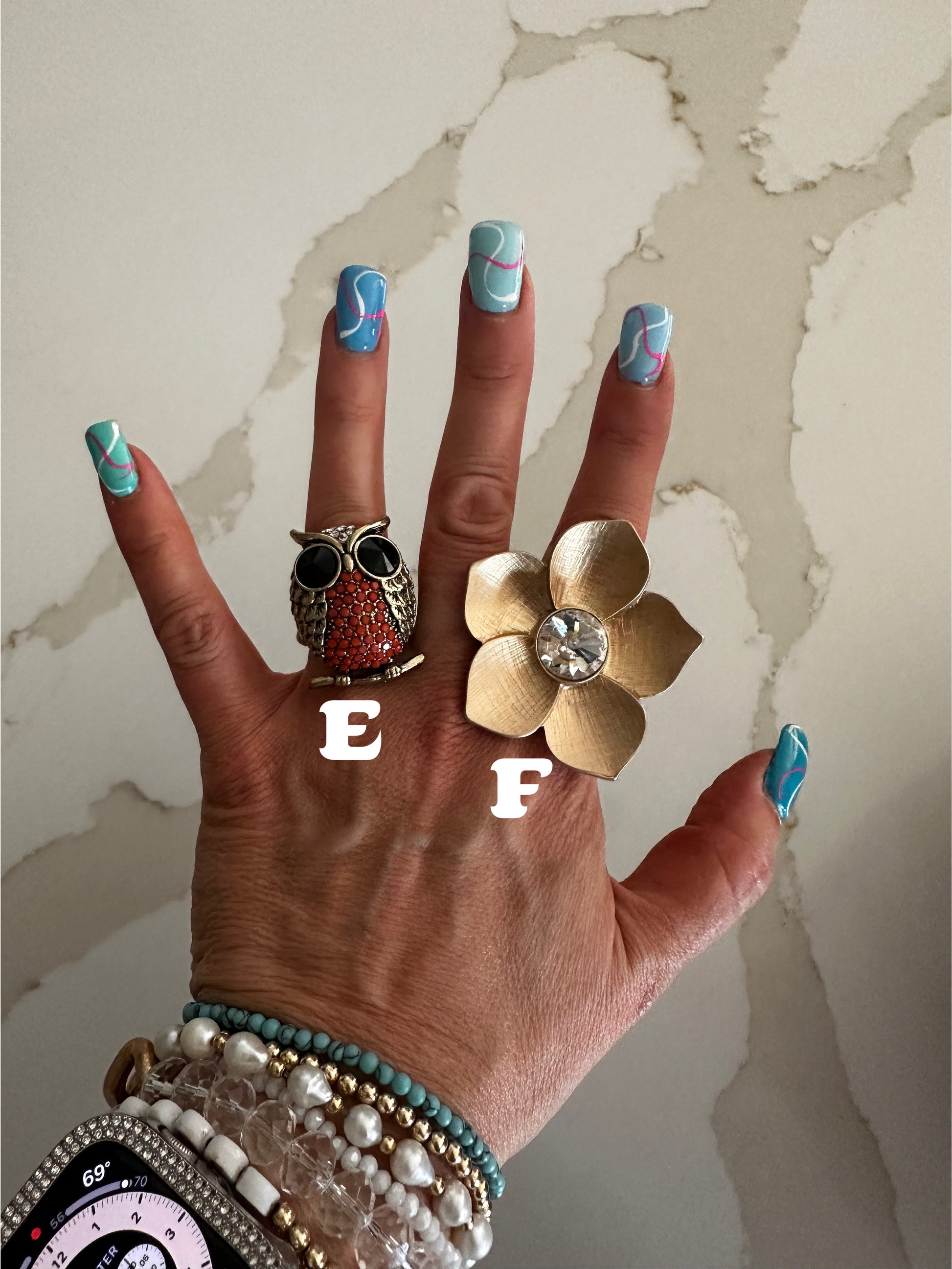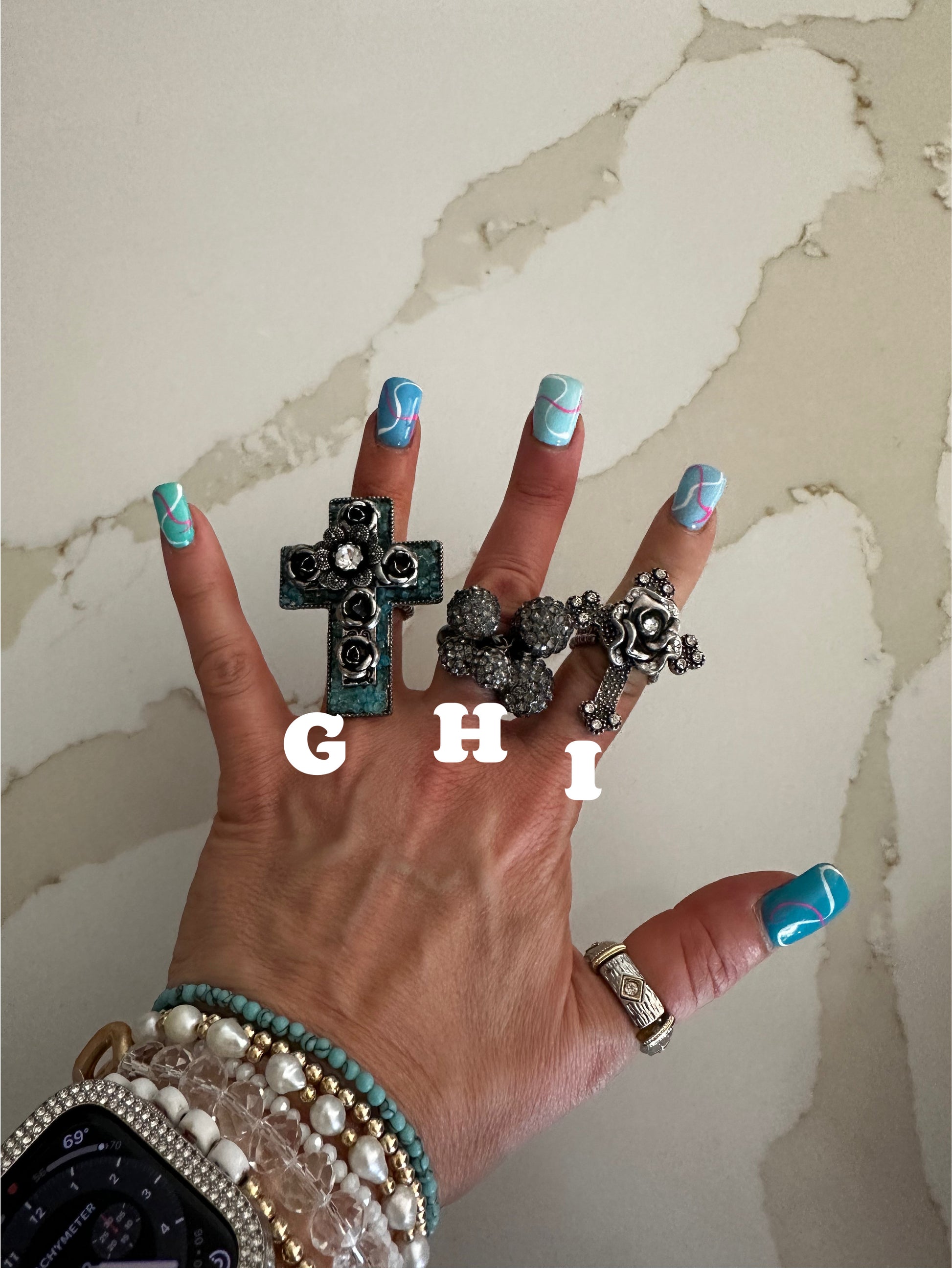 In the three sets of pictures, there are letters, each letter representing a different ring