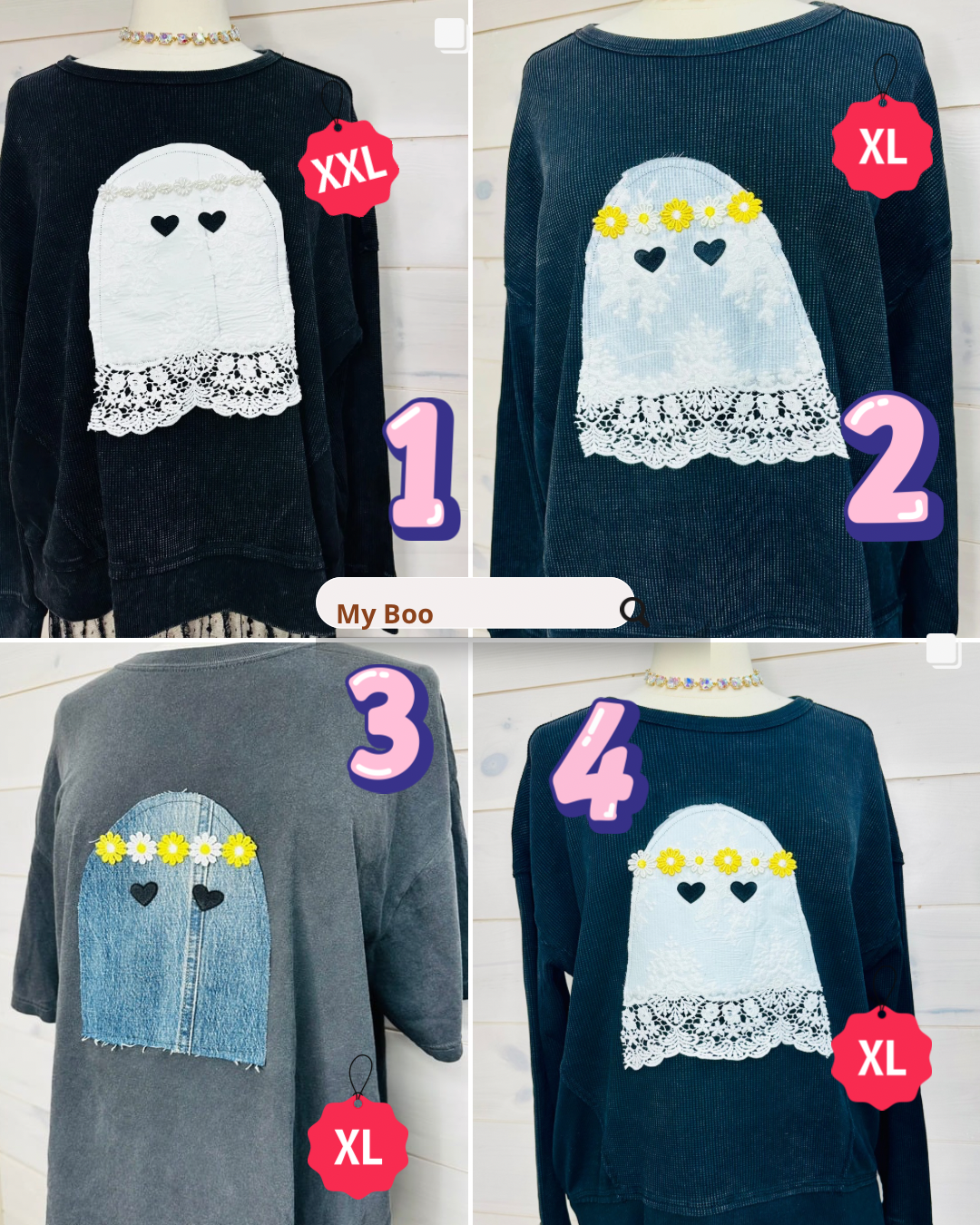 1,2,4 Are all longsleeve waffle shirts, with the cutest one of a kind Boo Bestie sewn on front