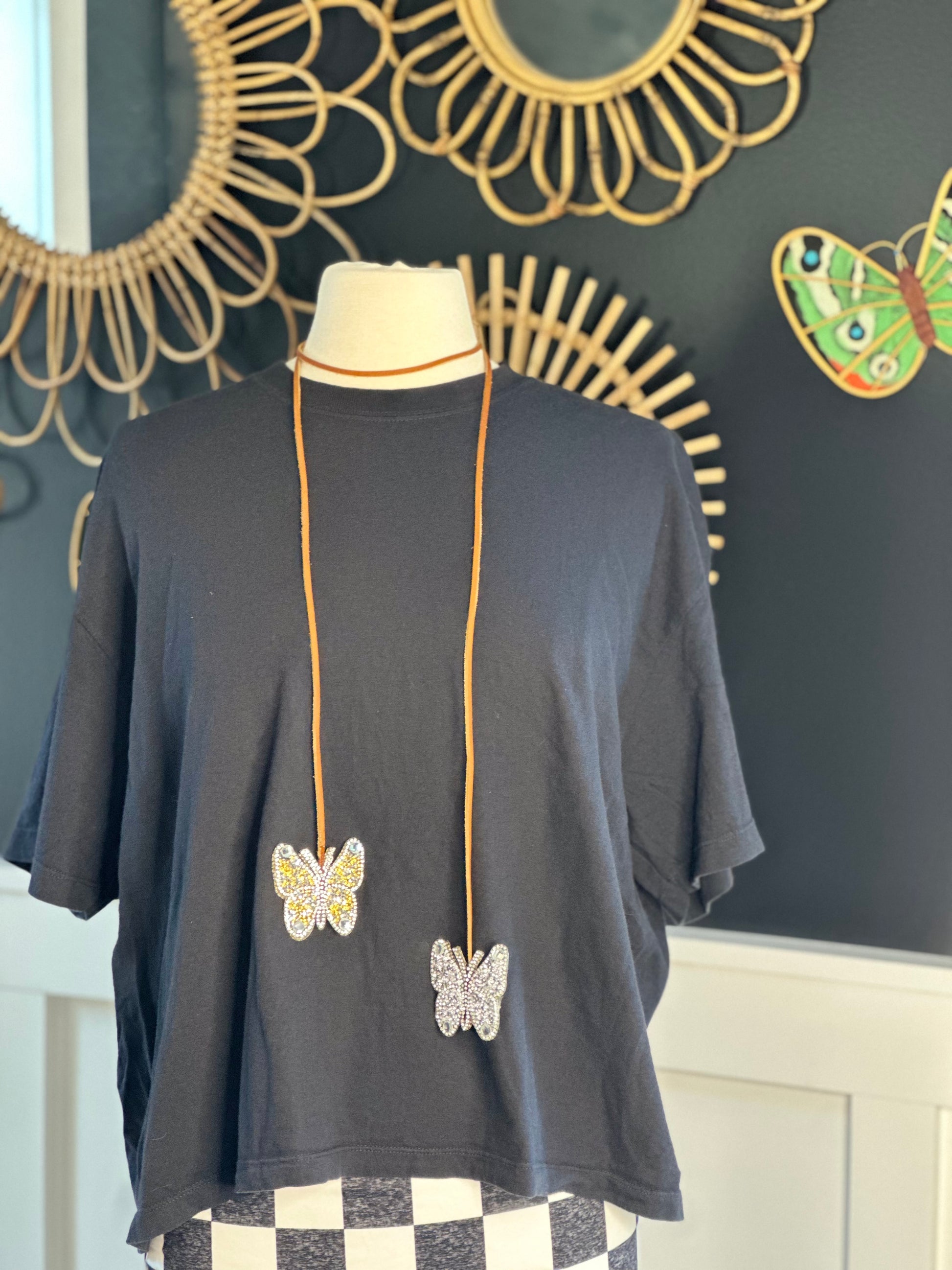 Beautiful rhinestone Butterflies on leather cord so many options on how to style this