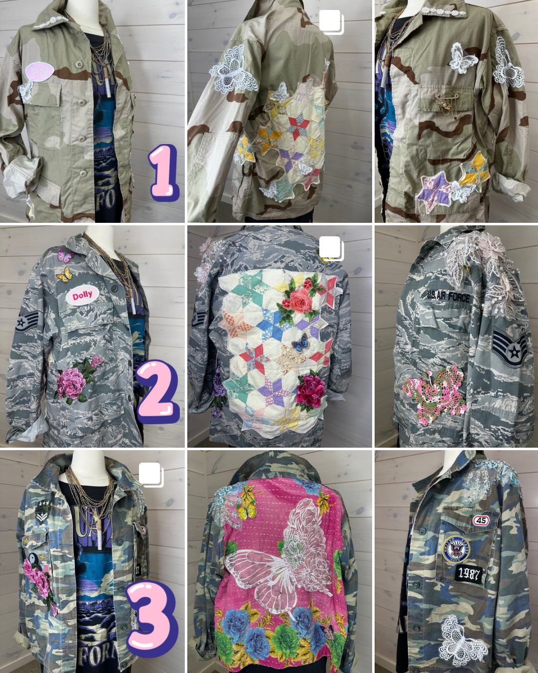 So a few things about these jackets there are so much detail in these there was rhinestones there’s pearls there’s quilts from 1920s. There’s embellished patches all the extra details.
