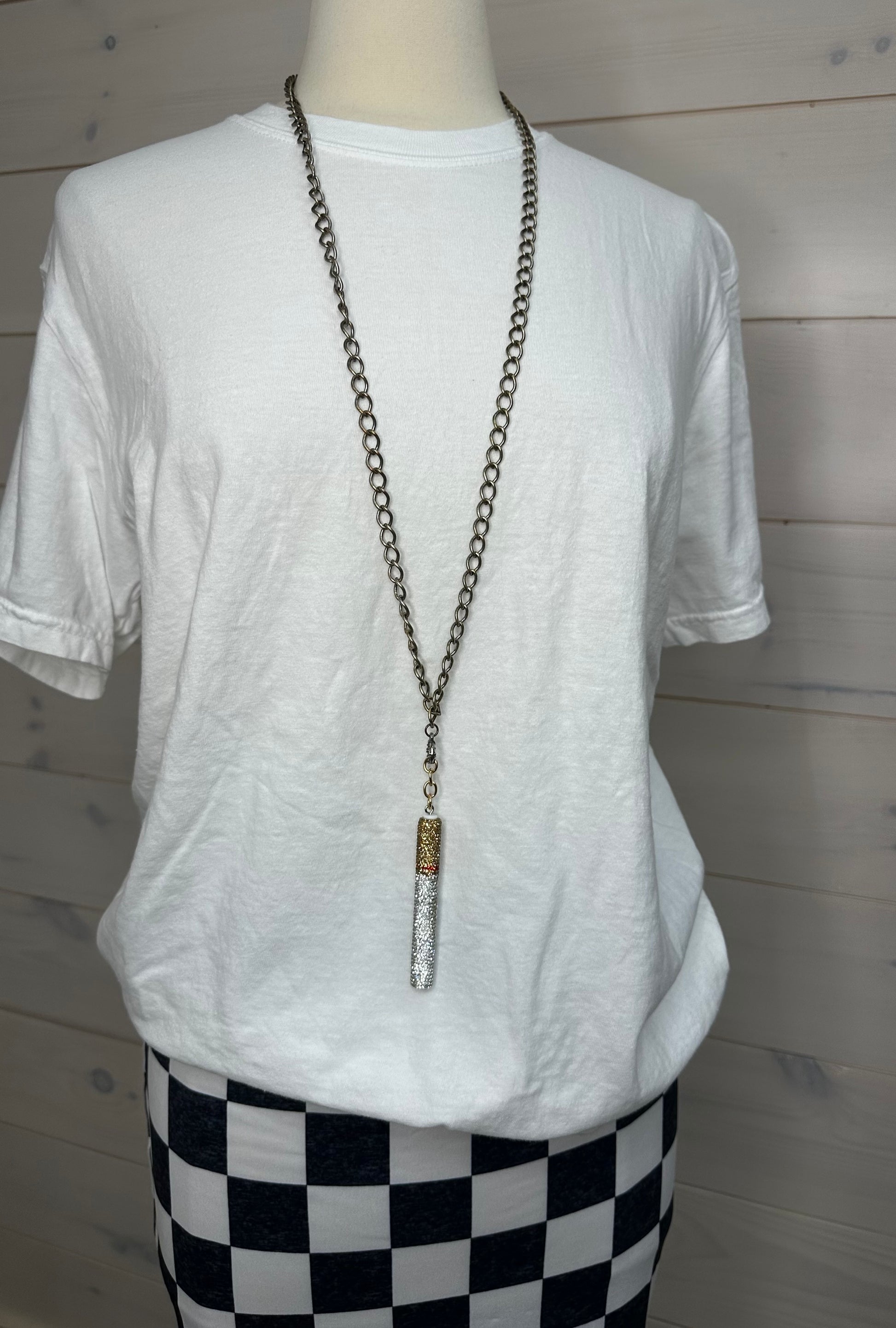 This vintage chain is the perfect thing to add a little sparkle too with this cigarette pendant bedazzled