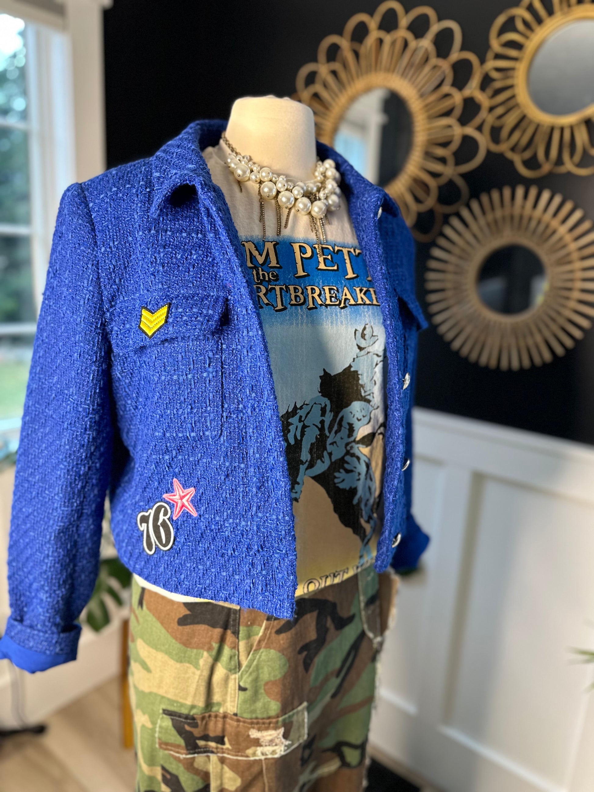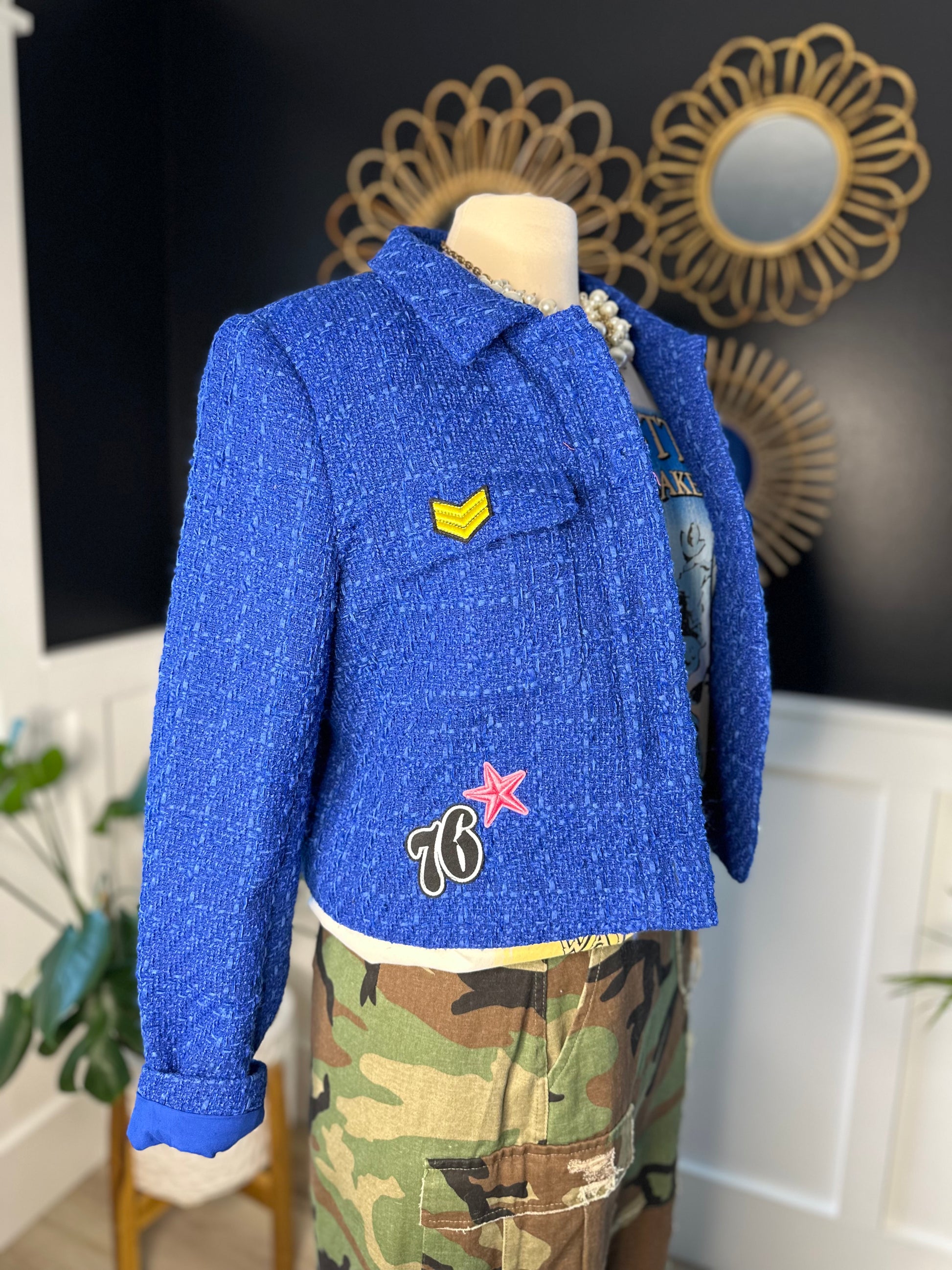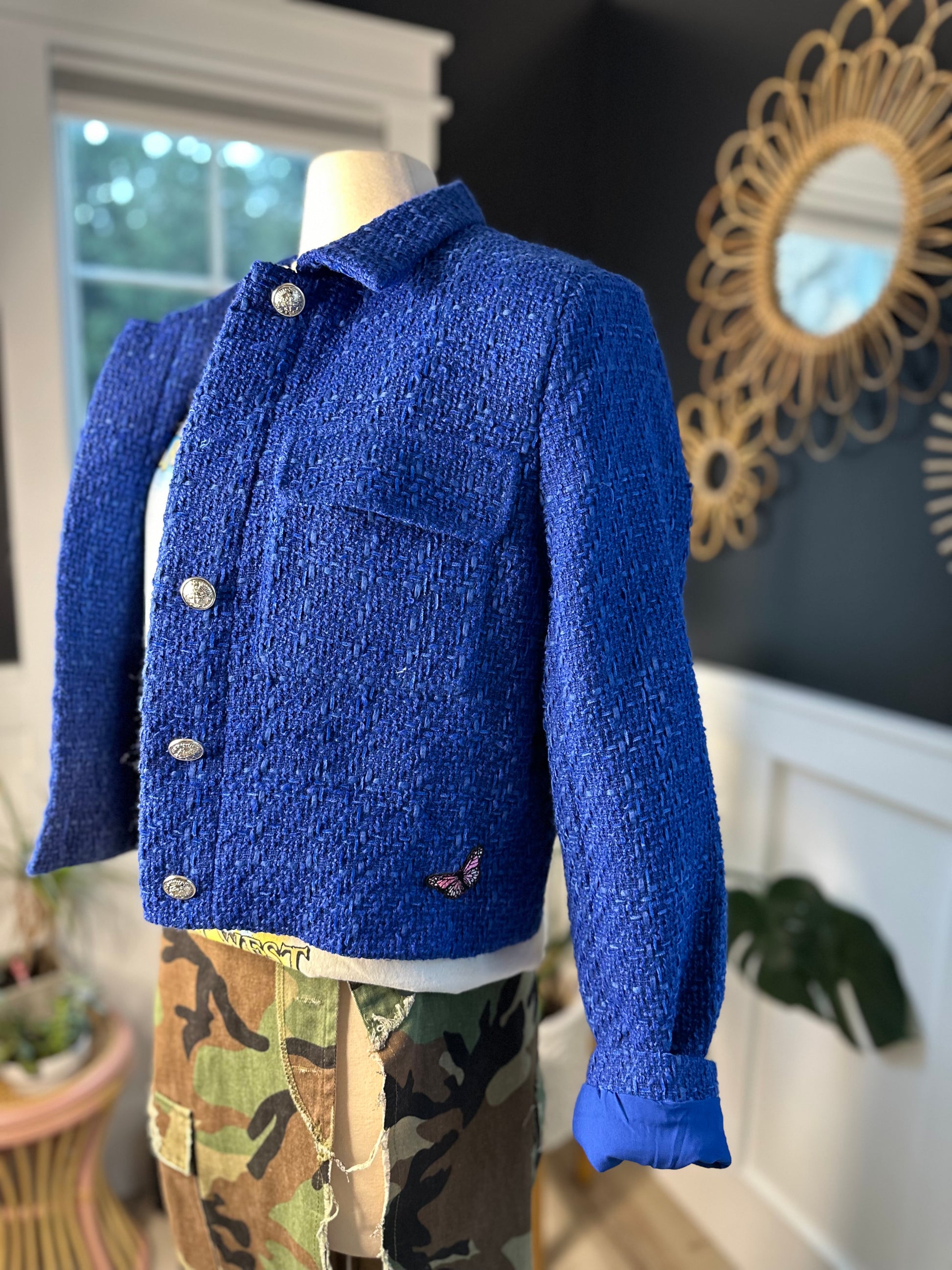 Rachell Zoe brand Beautiful blue tweed blazer. Â Size Medium fits true to sizeÂ