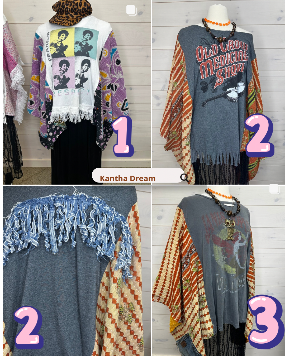 Size inclusive on all three of these on the back of the old crow medicine show is the denim fringe