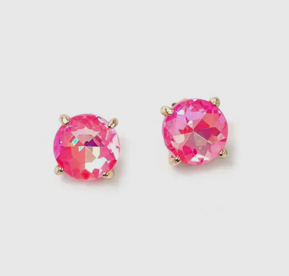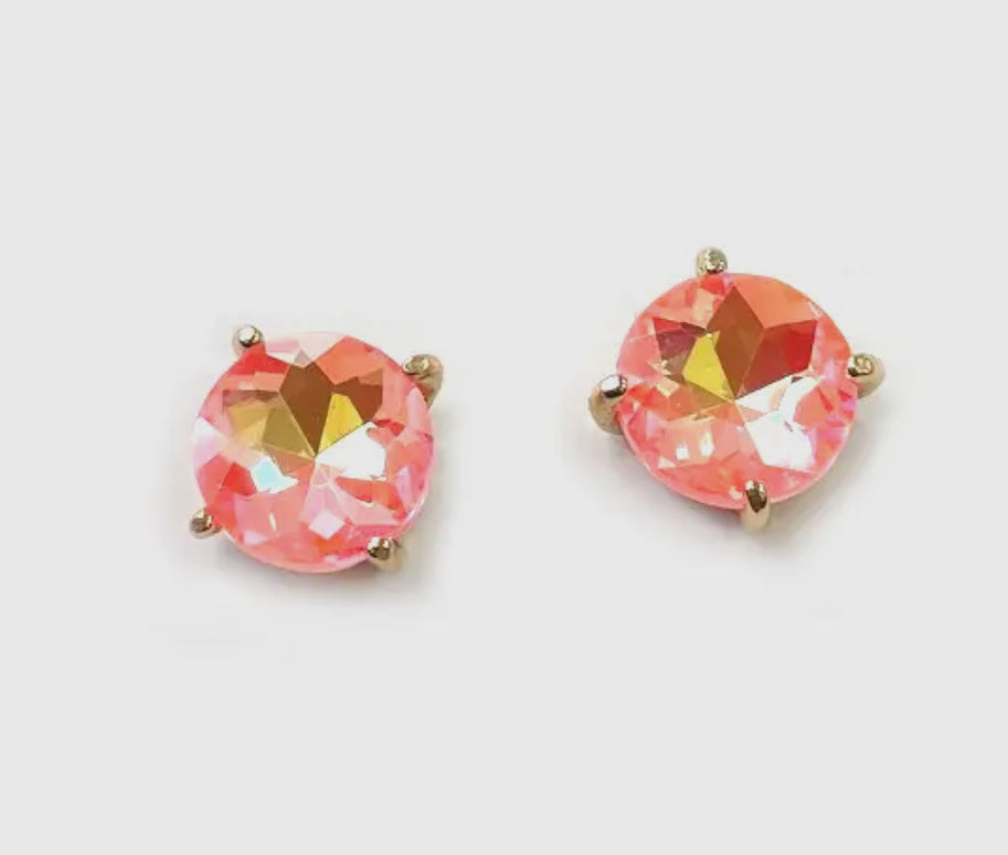 these beautiful rhinestone post earrings are oversized. It is a bright orange, almost neon shade with a reflective, overlay and clear a stone as the other option.