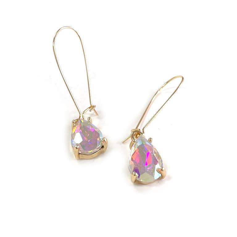 Midi Size Teardrop 5A Grade Glass Drop Kidney Wire Earrings: Clear AB
