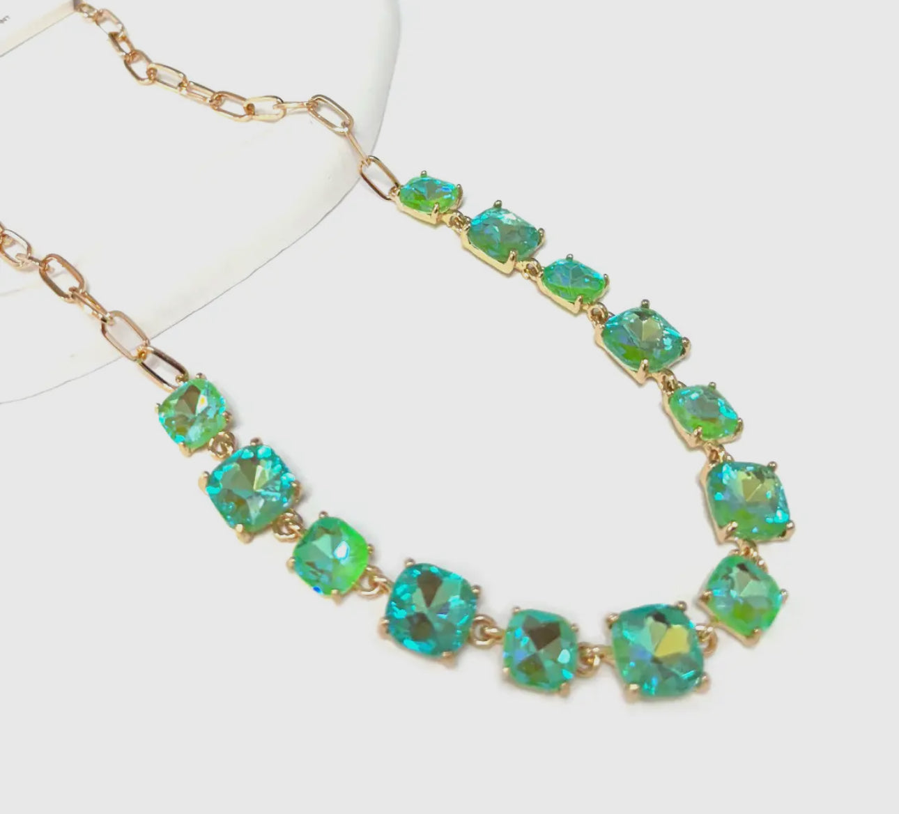 If you have left all the other rhinestone necklaces, you’re gonna love the multitone Neon rhinestone adjustable necklace with gold detail