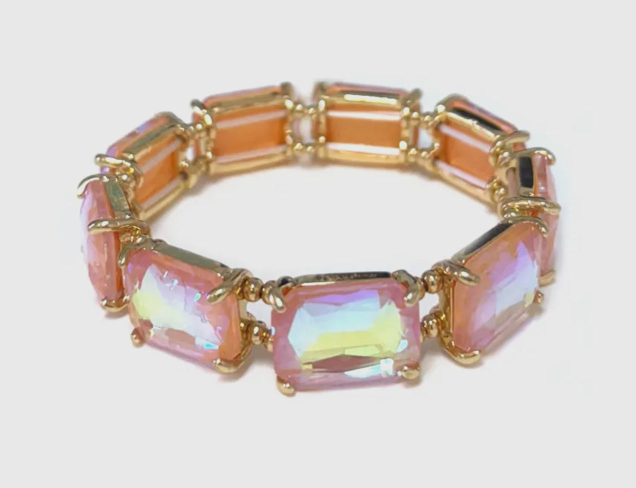Rectangular Glass Crystal Linked Stretch Bracelet