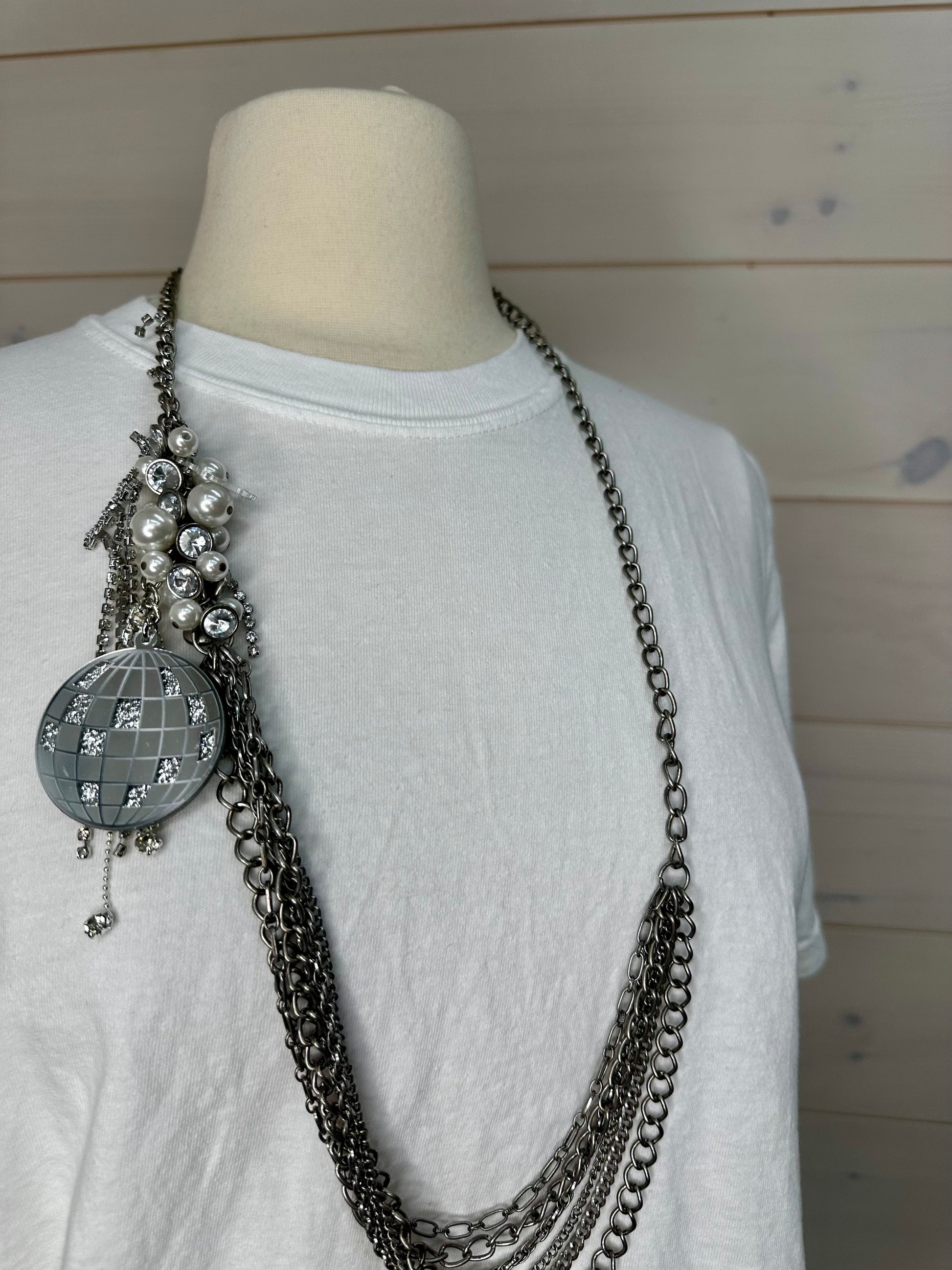 Oh, this is such a fun, one vintage necklace, reimagined with extra rhinestones, disco balls, and sparkle