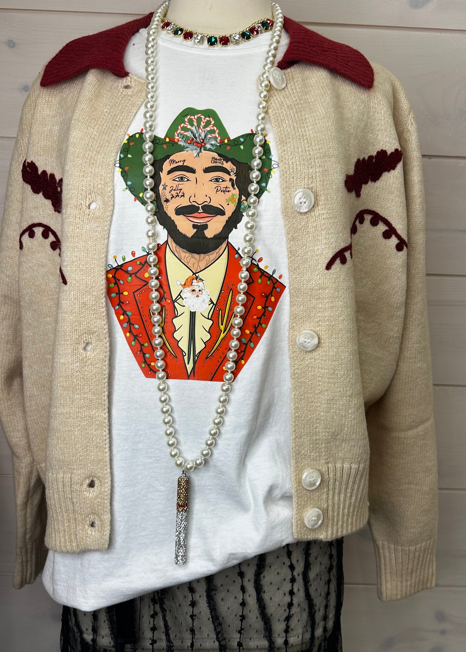 Beautiful pearl necklace long style can be looped around head twice with rhinestone cigarette very unique necklace