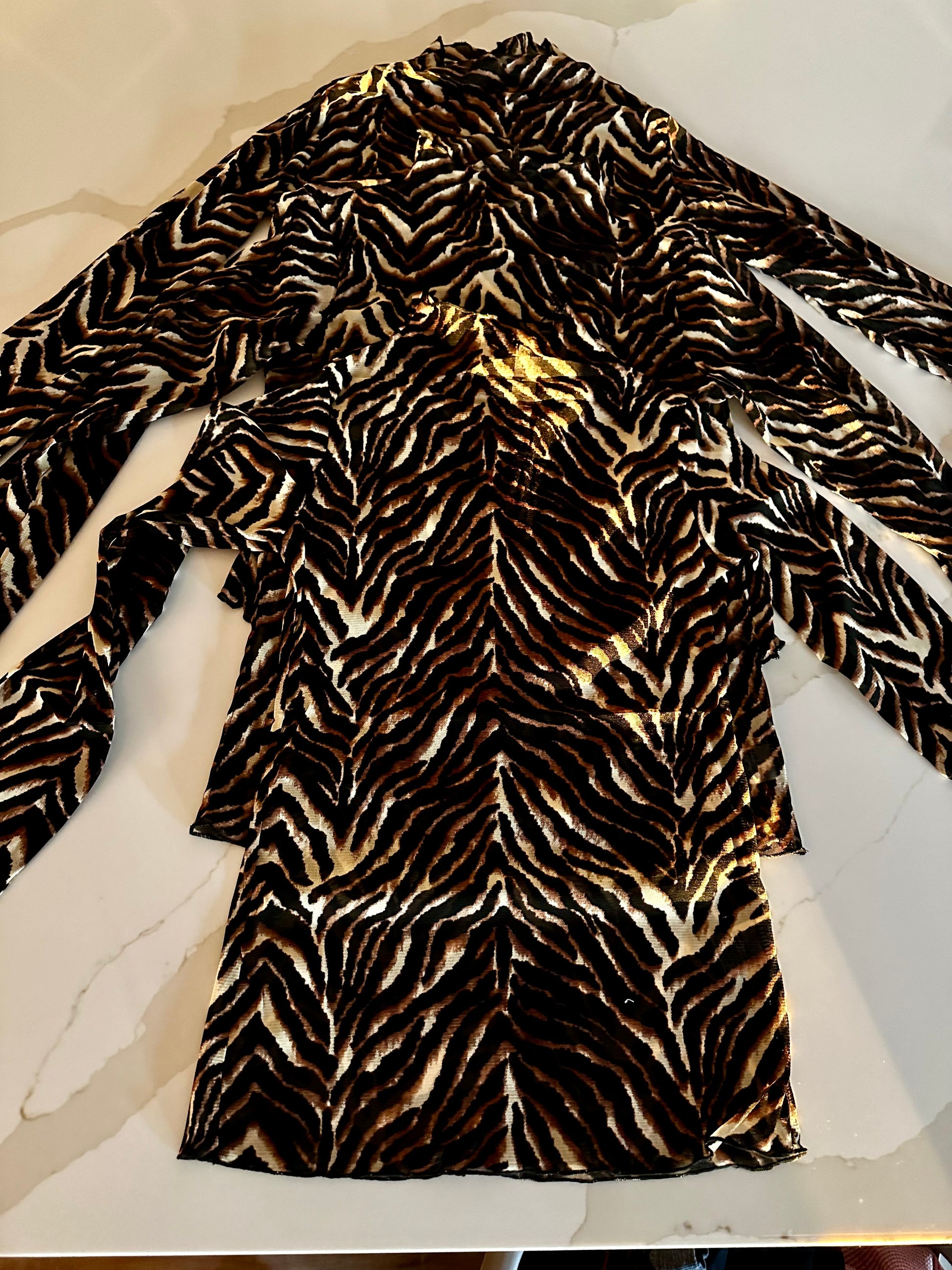 Beautiful quality, mesh shirt, long sleeves on all sizes very size comparable they just very a little bit as far as length and width, but it is a very stretchy fabric that will fit multiple body sizes even if your size isnβt available you could definitely size up and if youβre a size medium, you could even size down. Β The shirts have great length in every single size. They are not a mid drift.