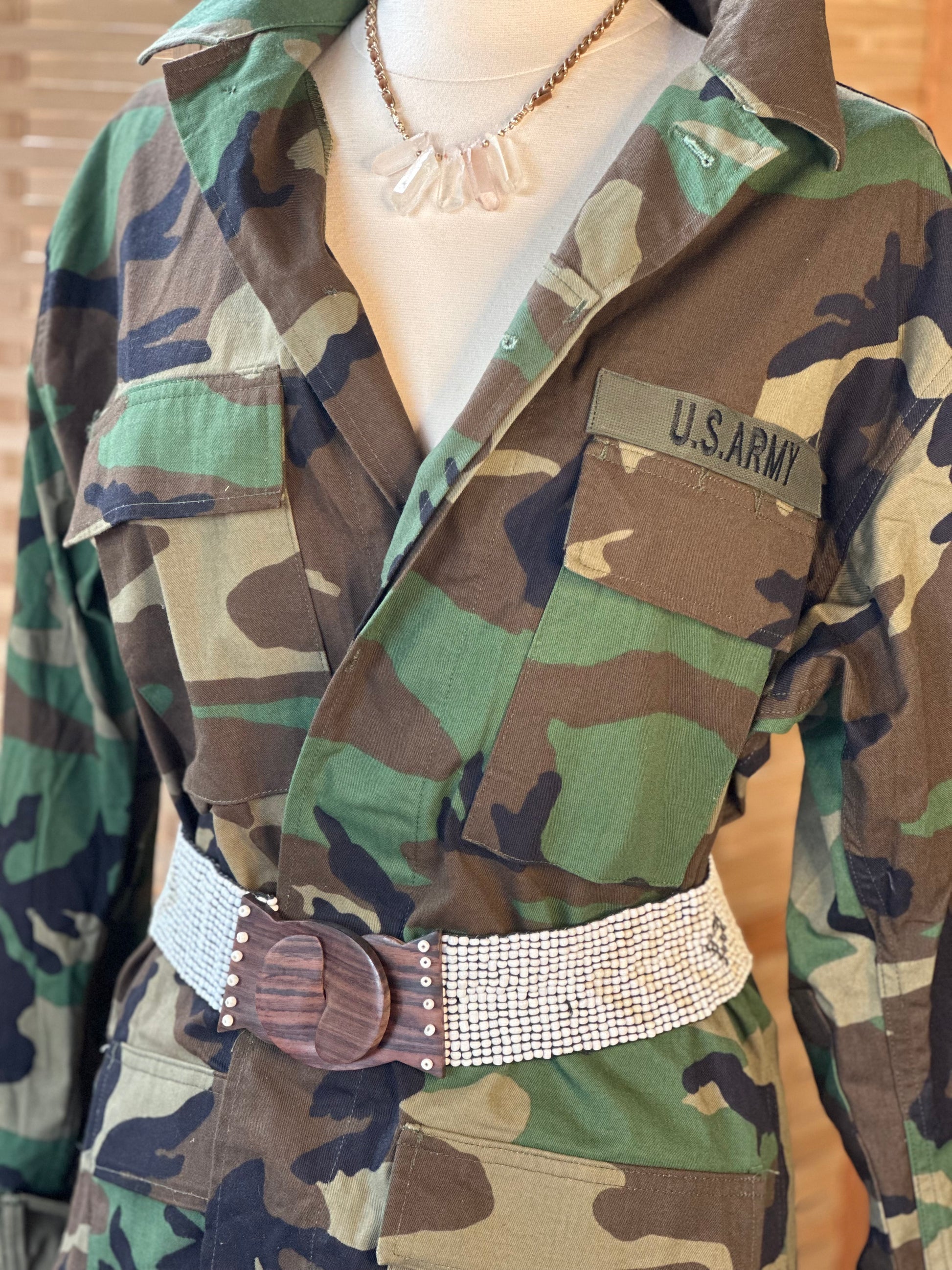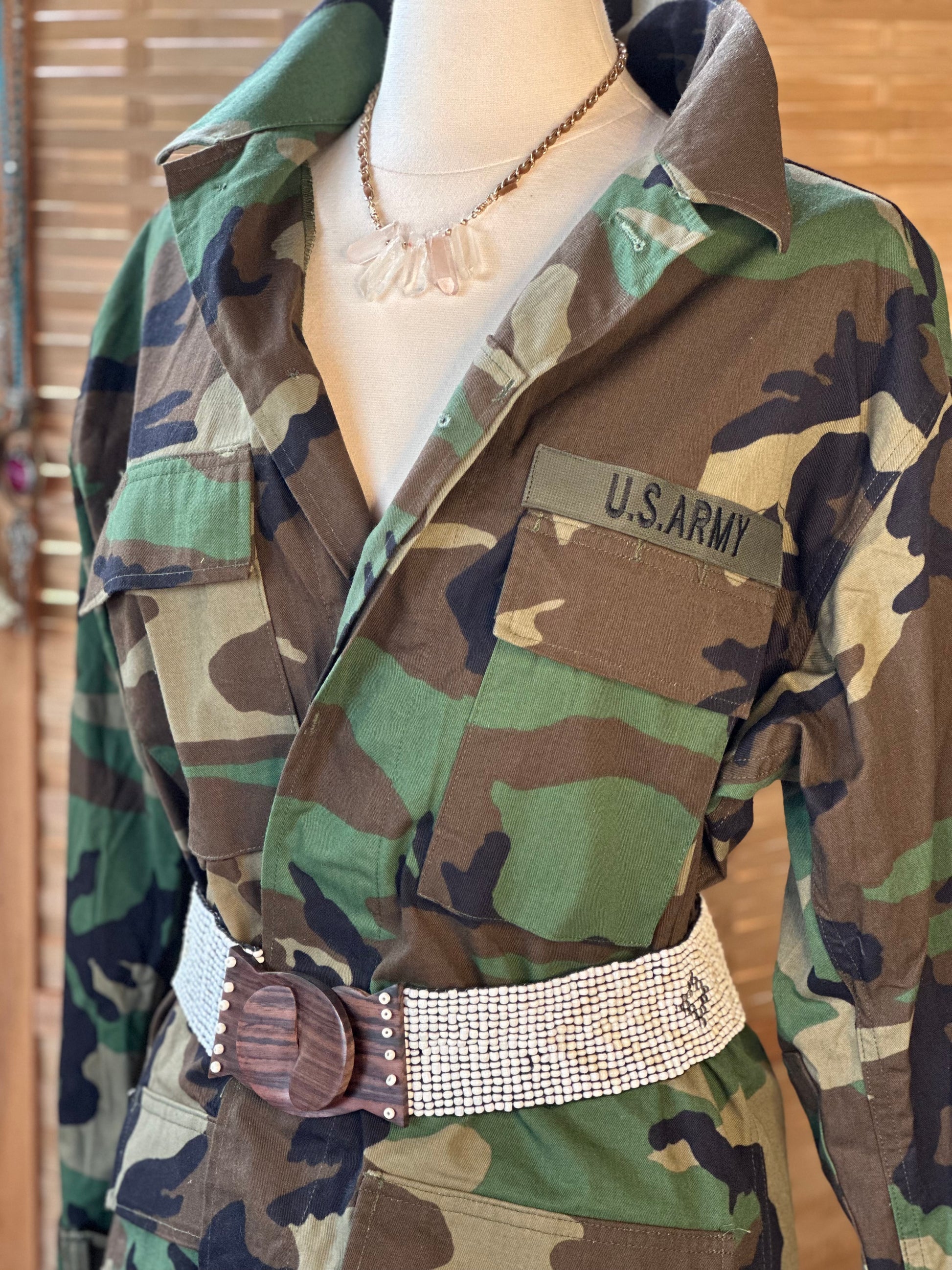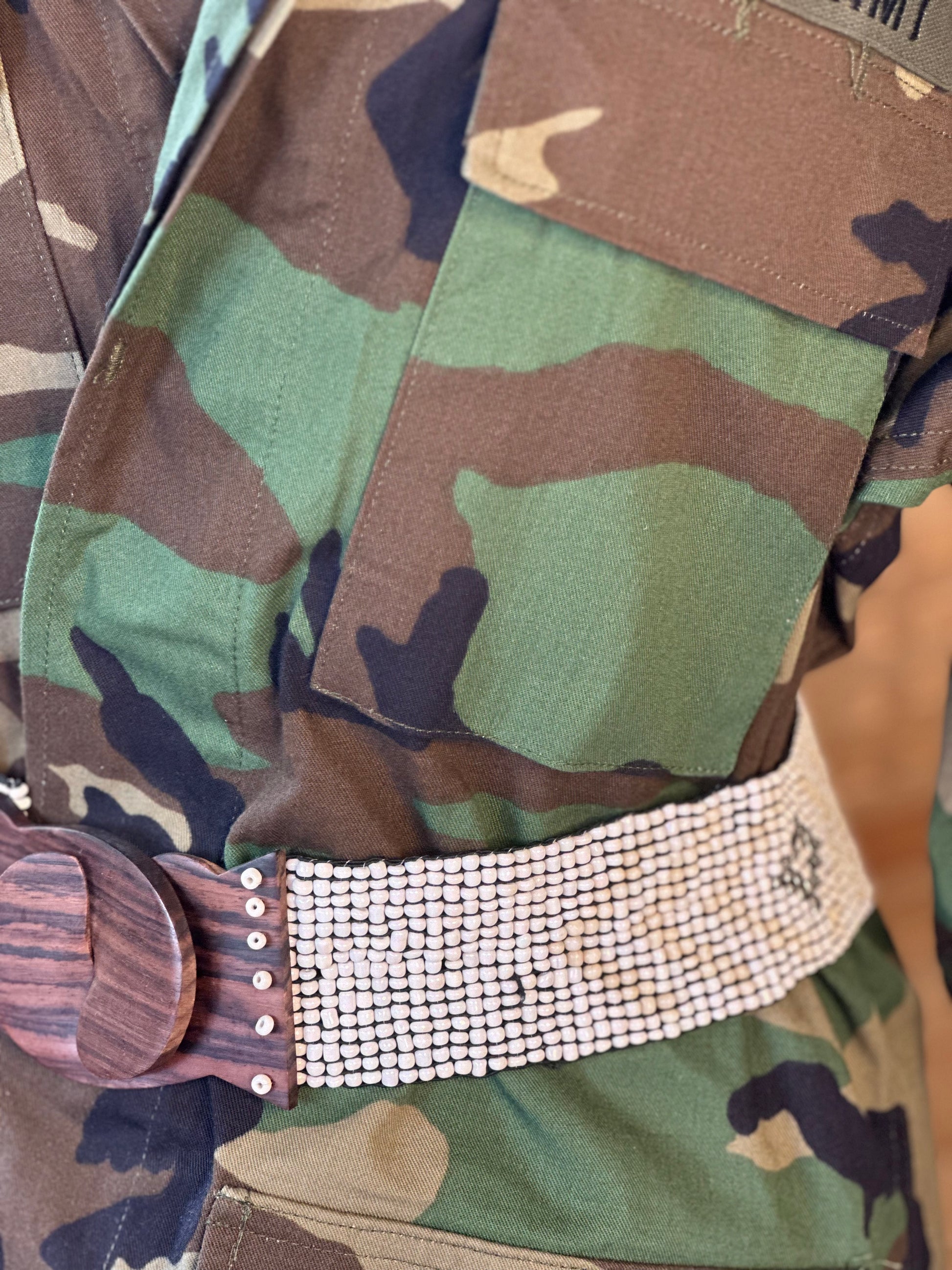 This belt is stunning with cream and pearl with a little bit of metallic tone